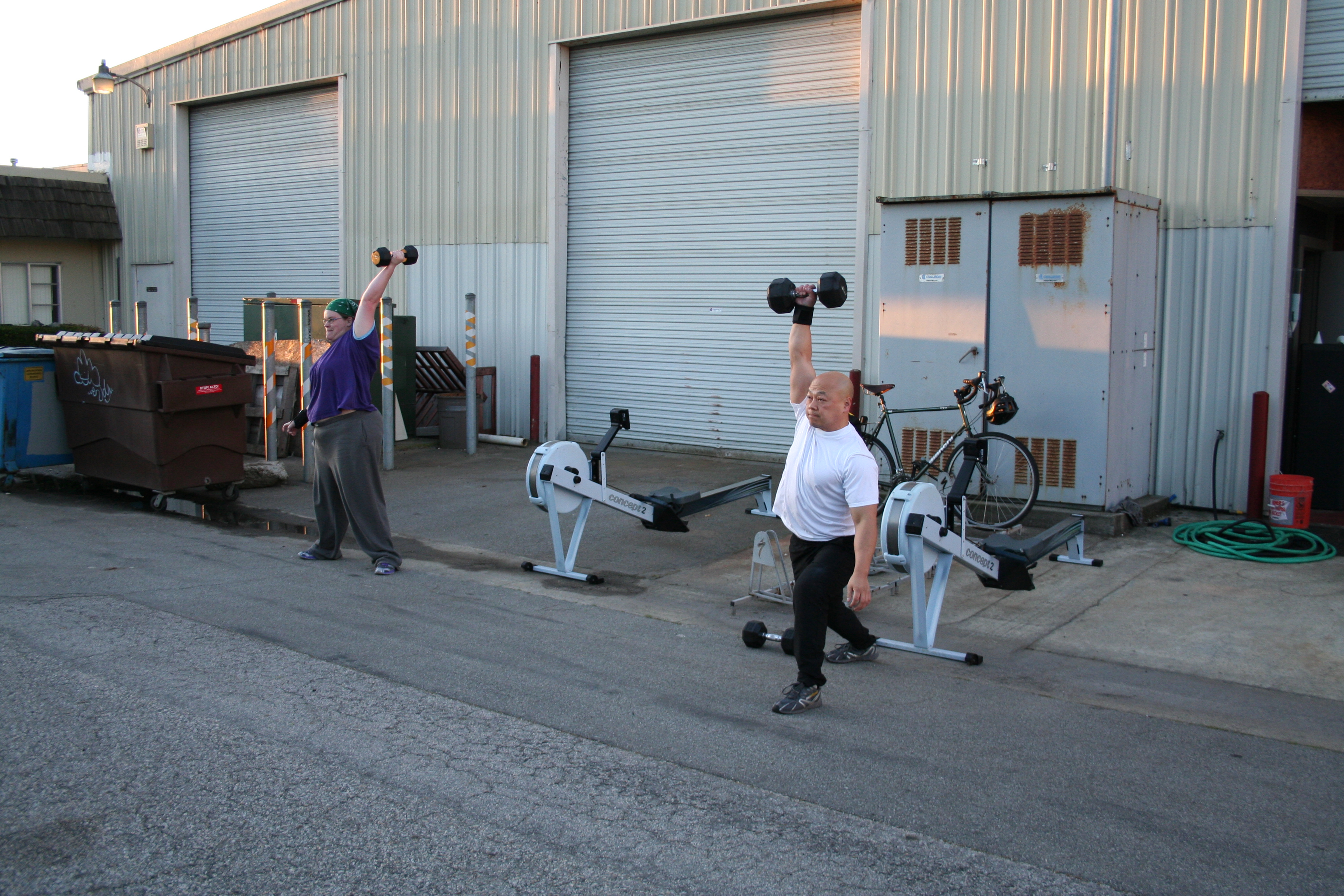 Quan and Lynn working out with the rising sun