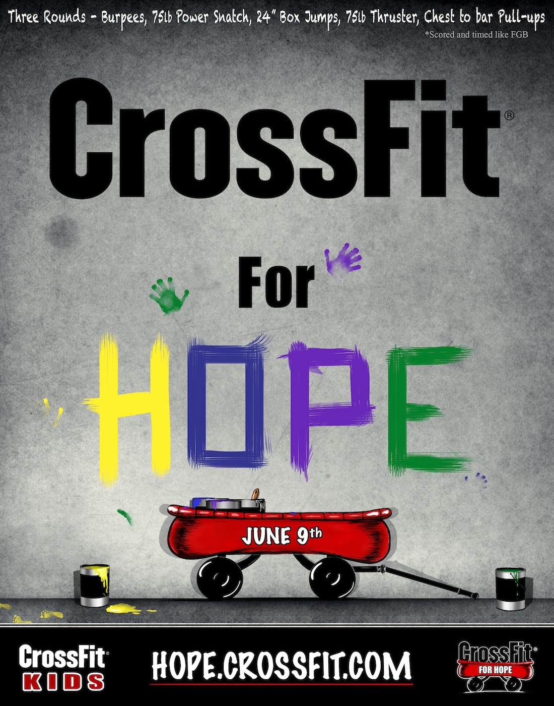 On June 9th, the CrossFit community at large will be participating in a fundraiser to raise funds for St. Jude Children's Research Hospital. The fundraiser is called CrossFit for Hope and it will be a fun community event and a great opportunity to do something meaningful with our fitness.