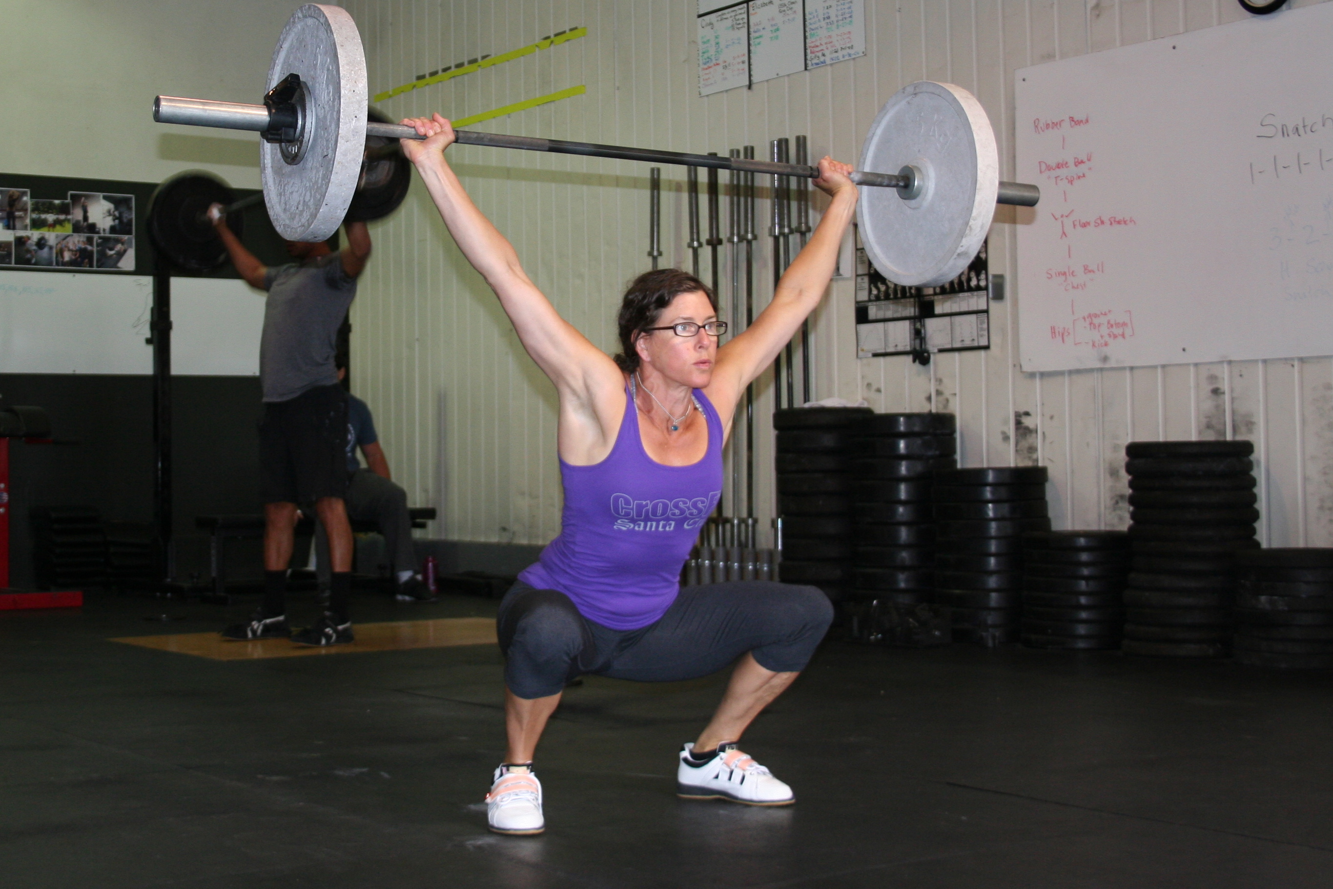 Dawn will admit she does not like the snatch very much, and the overhead squat is a tough lift for her. Yet here she is, attacking her weakness head on, and improving every time she lifts. Hard work and a little patience are all it takes to get better at anything. Great job Dawn!