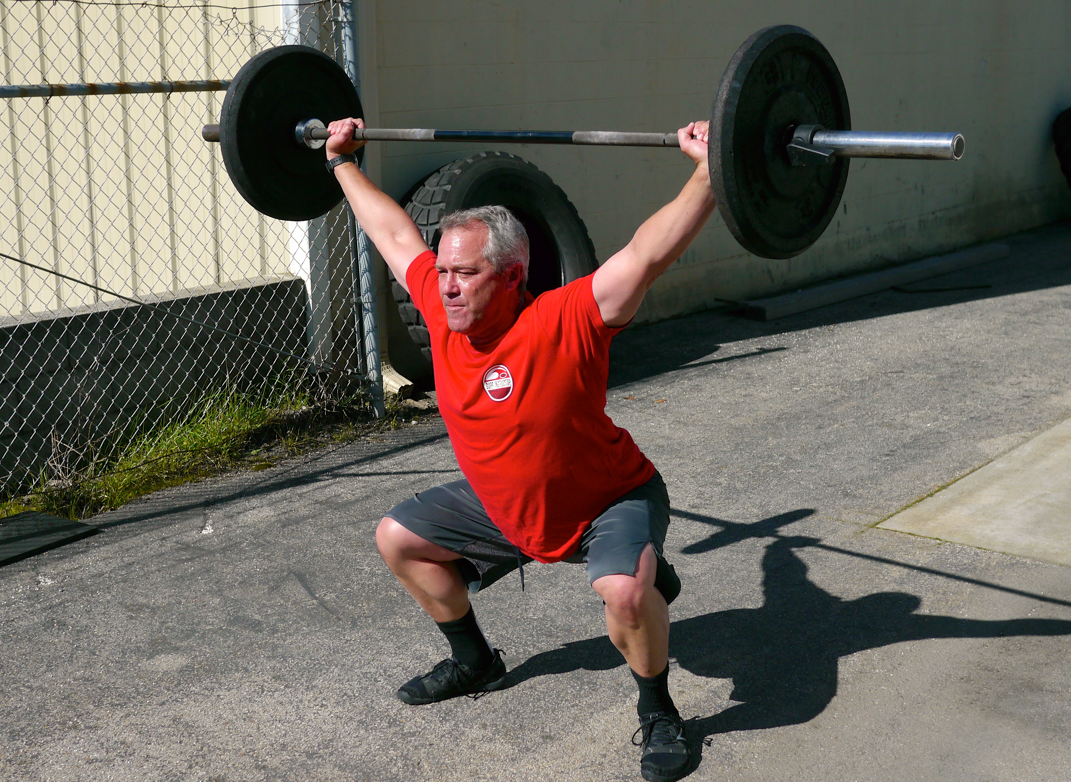 95 pounds alternating reps of power snatch and squat snatch, 20 reps