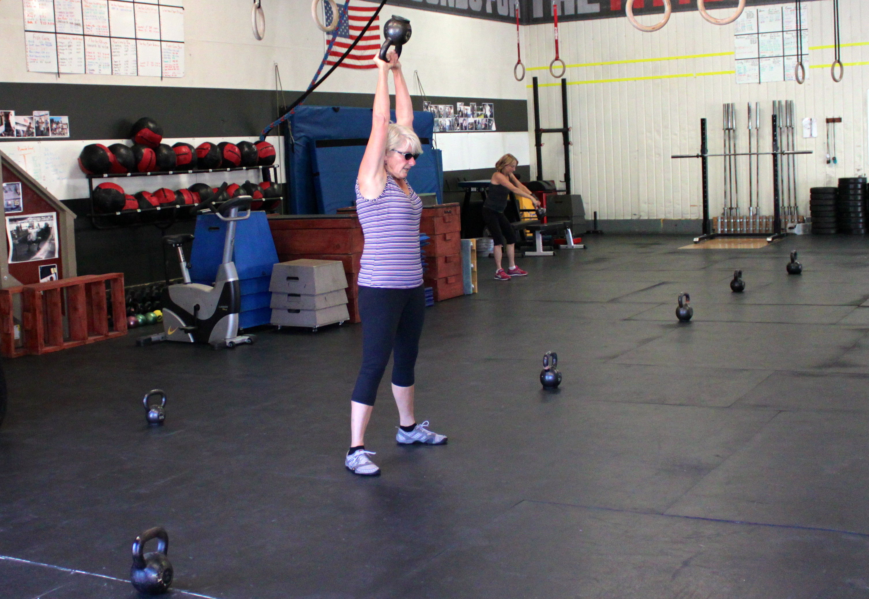 70 pound Dumbbell shoulder-to-overhead, 10 reps