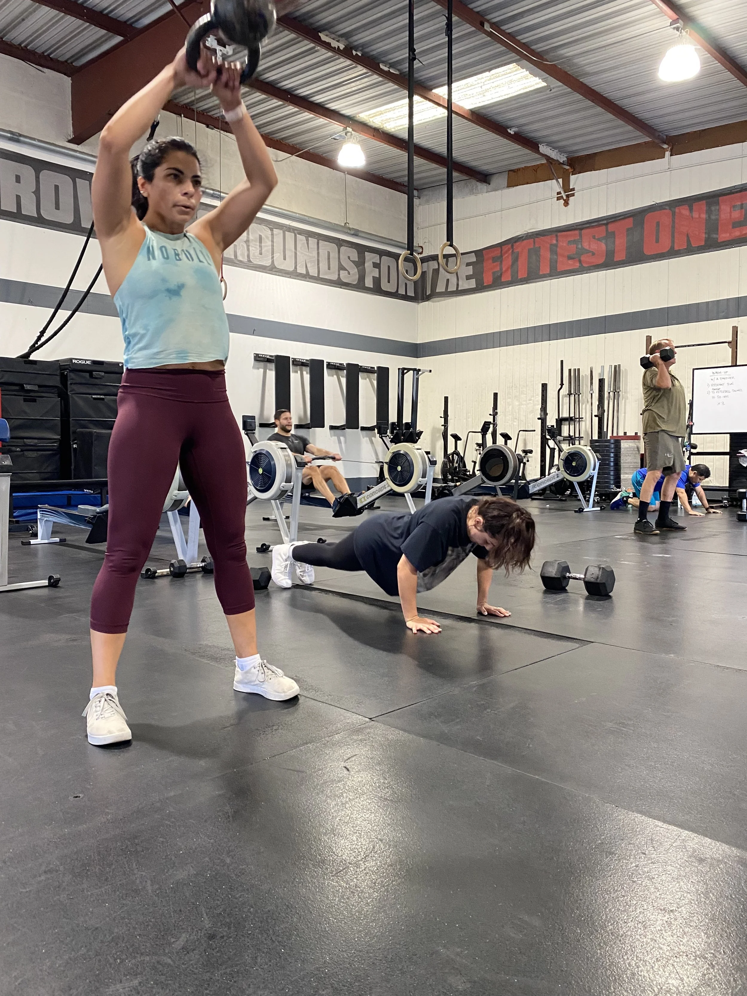 50 ft overhead walking lunge (45/35 lb barbell)