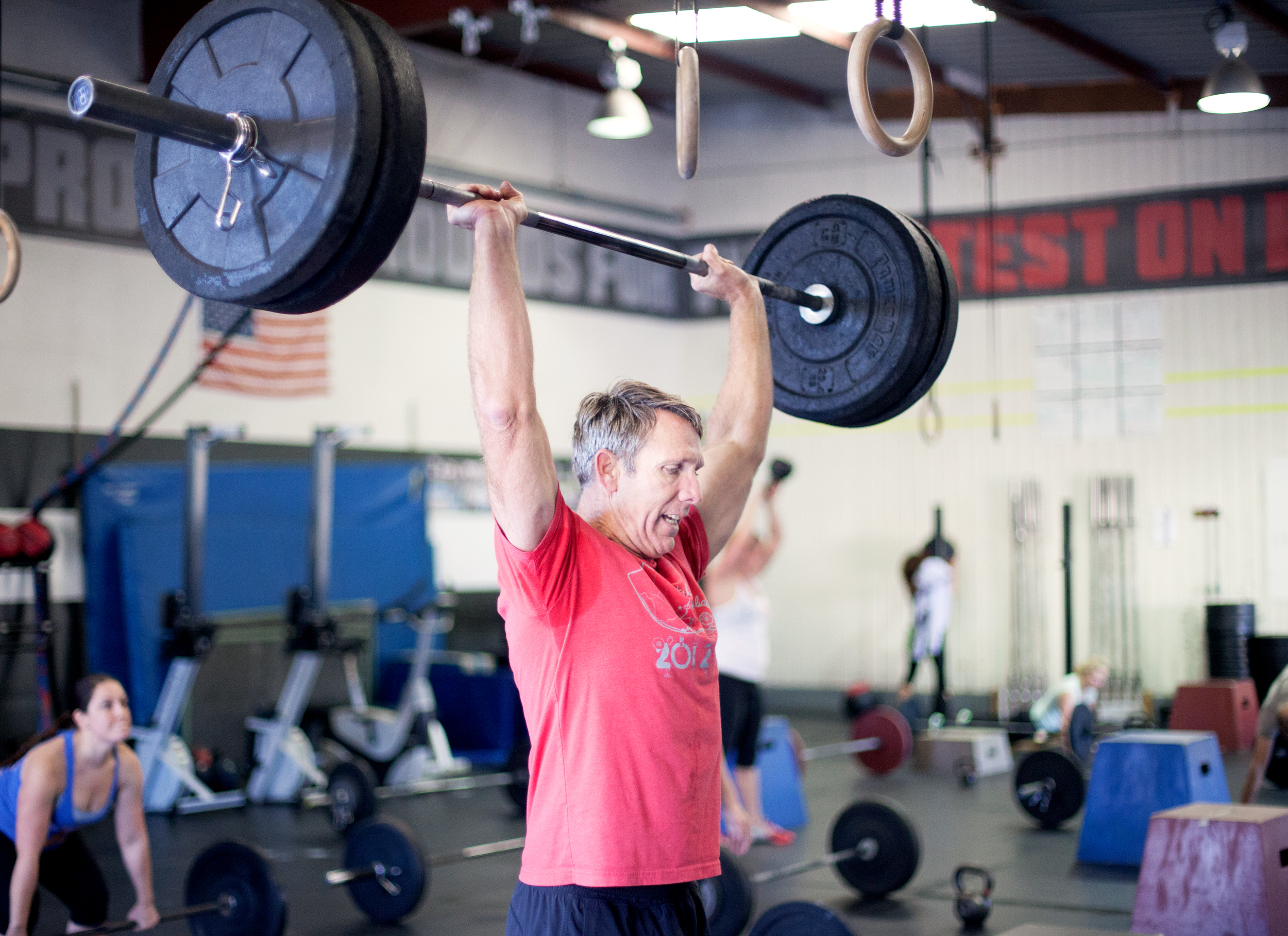 50-pound dumbbell clean & jerk, 21 reps