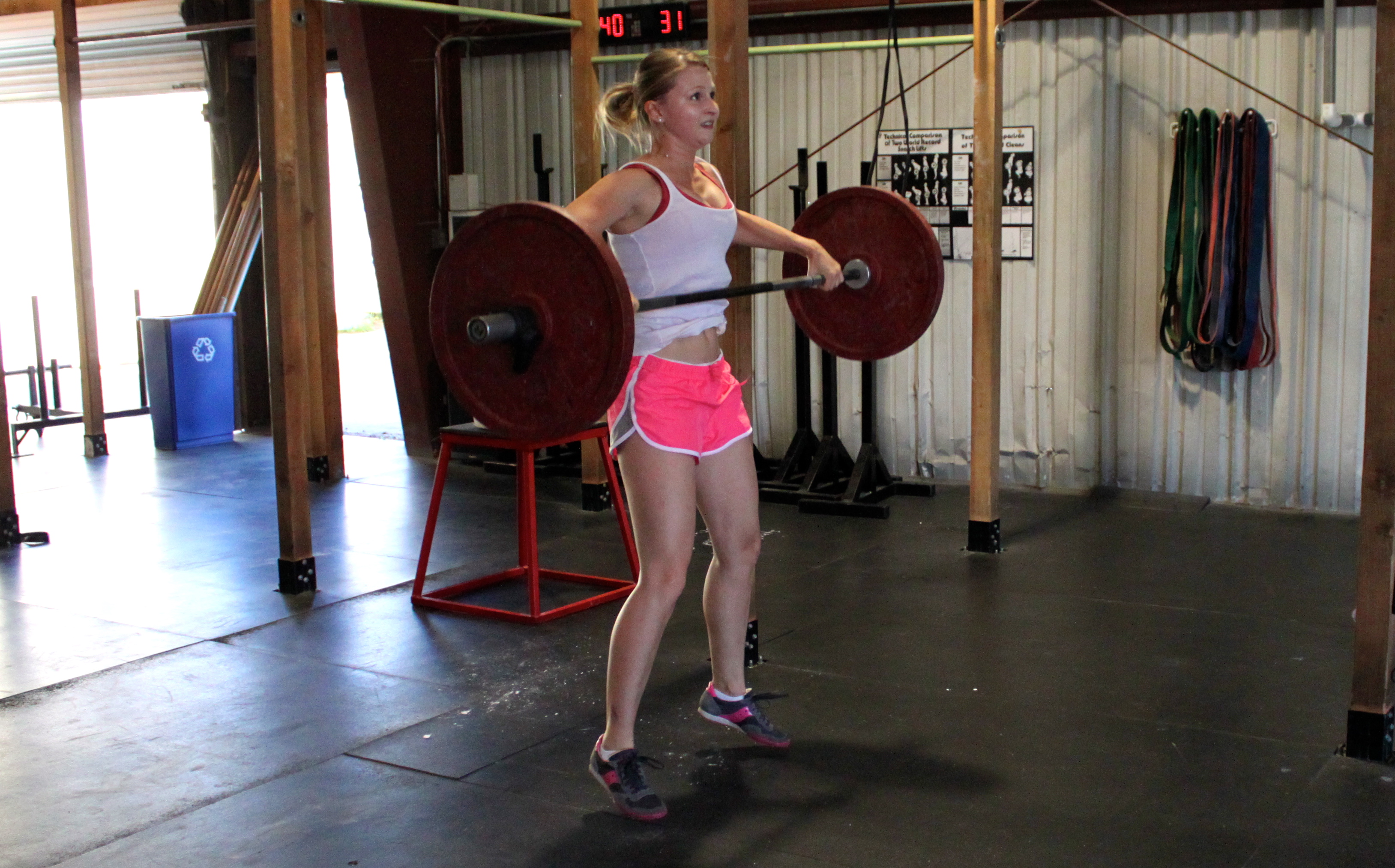 70 pound Dumbbell Hang clean, 10 reps