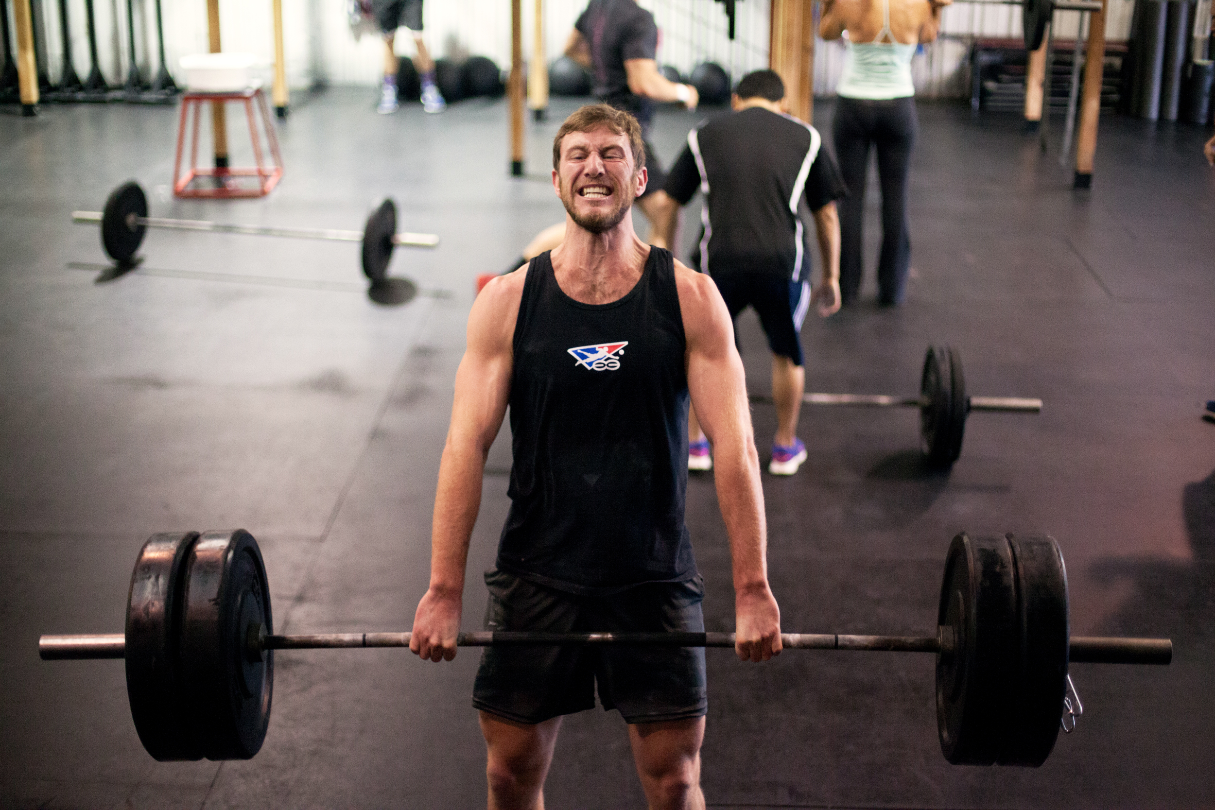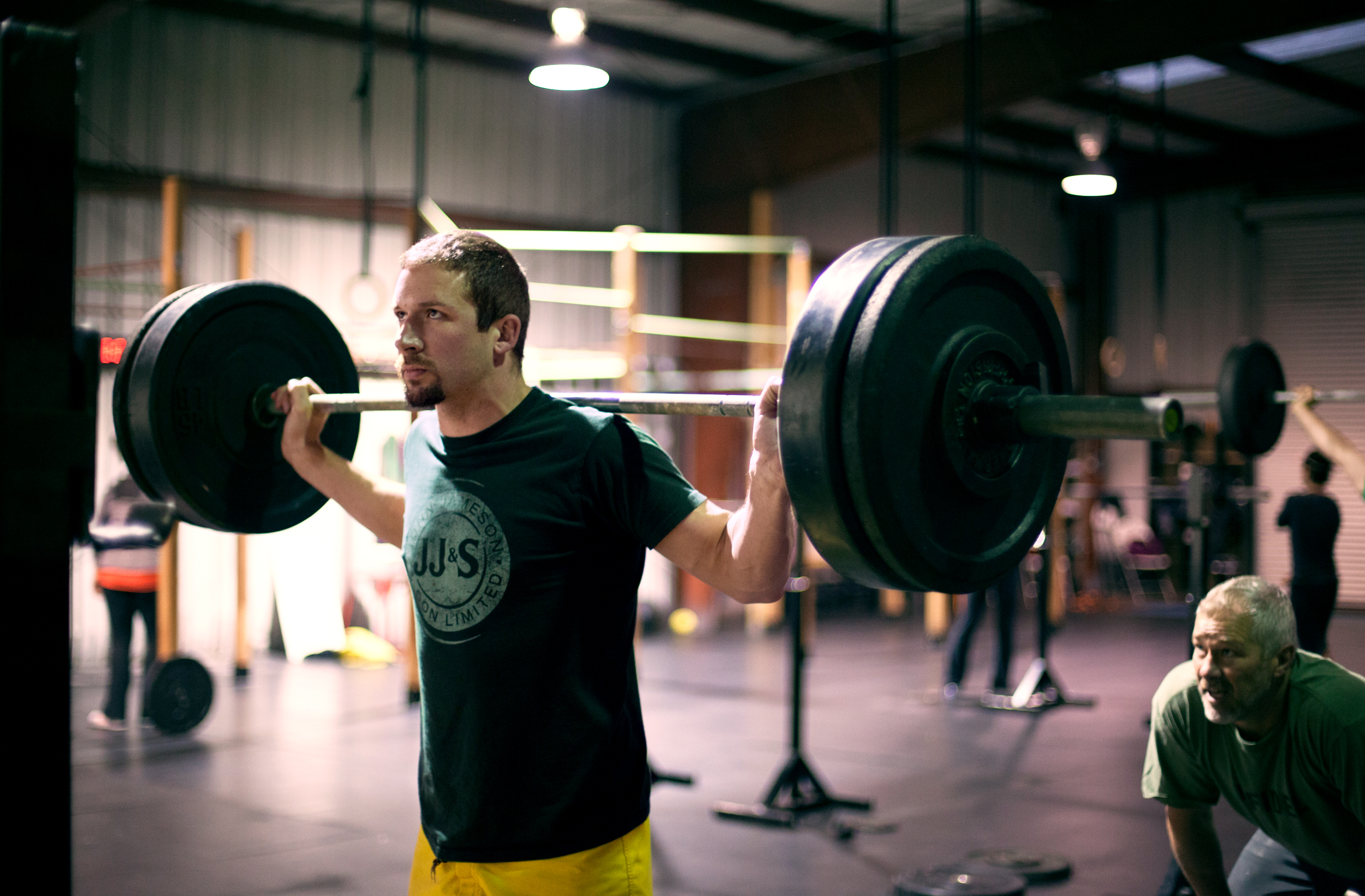 In the photo, we see Brent carefully watching over Justin as he goes for a snatch balance. One of the best things about coming to class to do CrossFit is the people in class. Of course the program works, but the people are what keeps most of us coming back.
